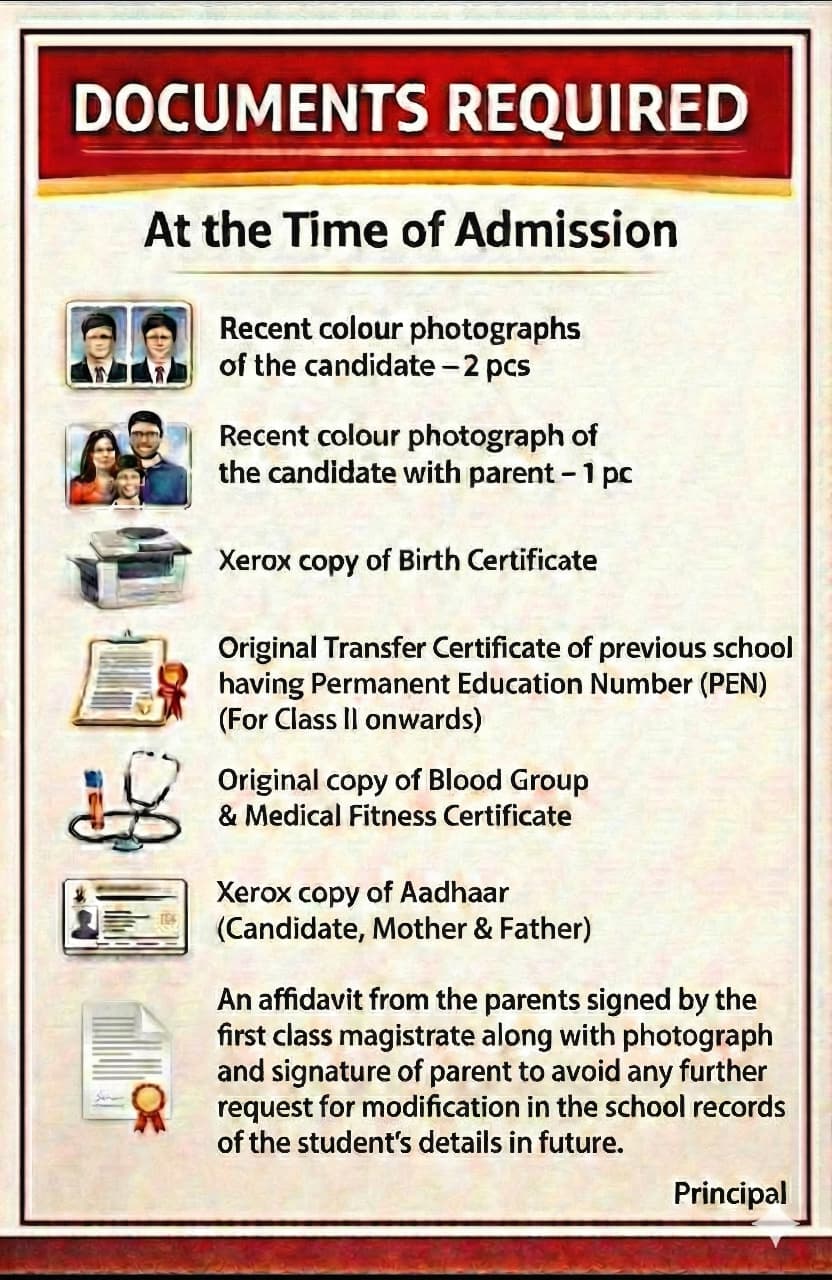 Documents Required at the time of Admission (2026-2027)